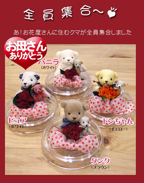 ペアーのクマとプリザのアレンジ★サンクスペアポット:プリザーブドフラワー【楽ギフ_包装】【送料別】【あす楽対応_北海道】【あす楽対応_九州】【あす楽対応_関東】【あす楽対応_近畿】【あす楽対応_四国】 価格: 2,500円 レビュー評価:0.0 レビュー数:0 商品名 サンクスペアポットポット【ドンちゃん】プリザーブドフラワー 商品説明 ペアのくまがやさしくてホットするポット。 プリザーブドフラワーの花束を持っています。 ふた付きなのでホコリにならず、きれいな状態を保てます。 サイズ・仕様 ■サイズ:直径12cm高さ13cm ■花器:ドーム型・プラスチック製(ポット) ■プリザーブドフラワー(主な使用花材:カーネーション・バラ) お届け可能期間 ■お届日指定可能商品 ■14時までのご注文で即日発送いたします。 ギフト対応 Supported by 楽天ウェブサービス |